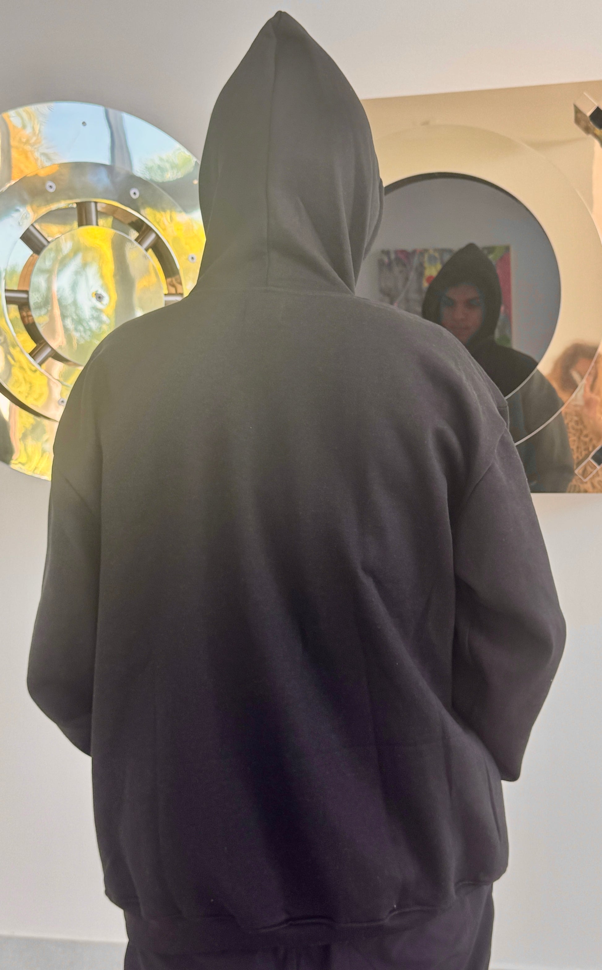 Tainowears Premium Pullover Hoodie, crafted from 100% natural Peruvian cotton. This oversized hoodie features a front patch pocket, generous hood, and ribbed hem and cuffs for style and durability. Designed by renowned American fashion designers, it blends luxury with sustainability, featuring a green tab as a nod to environmental commitment.