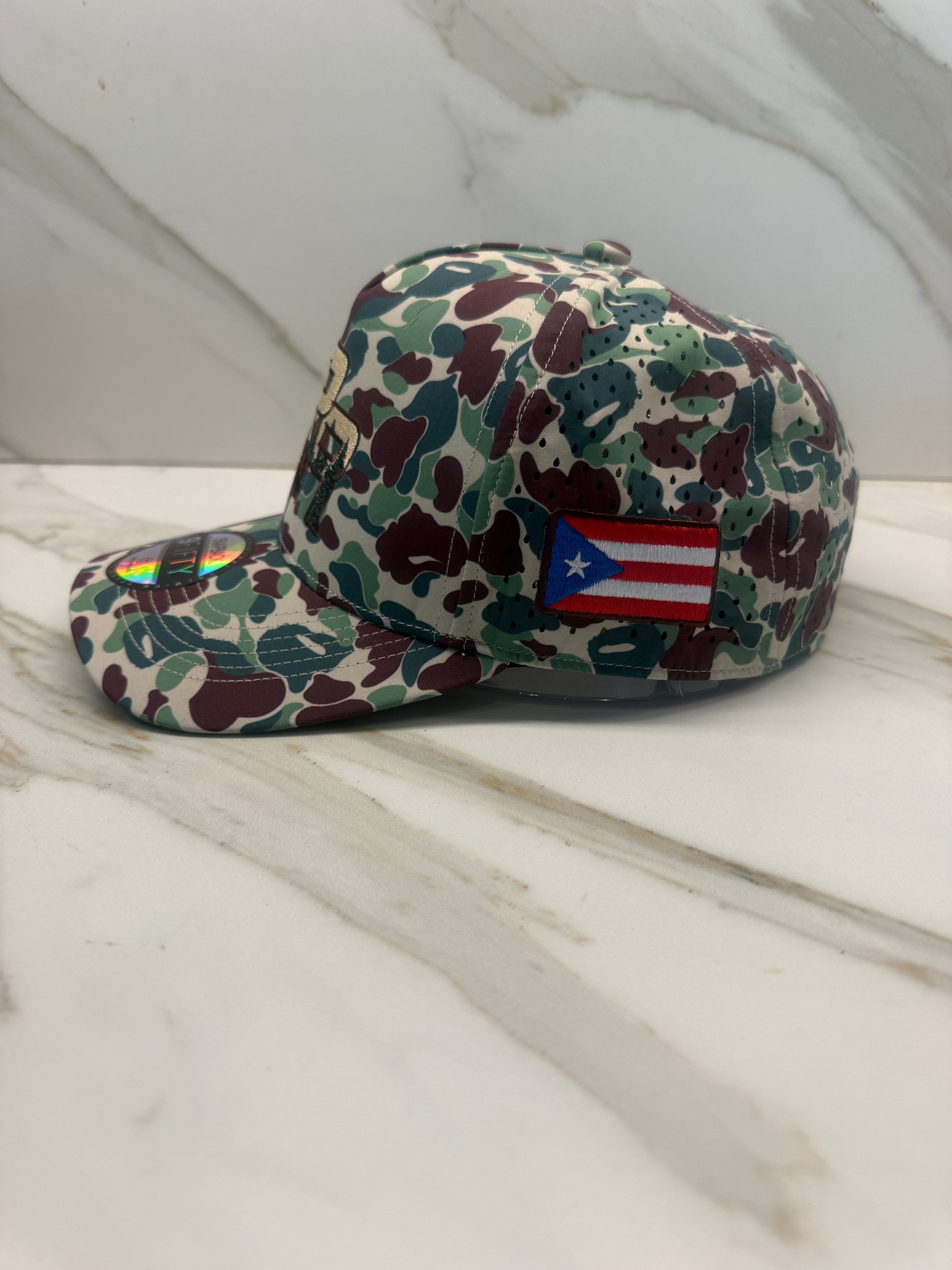 Puerto Rico camouflage hat with premium embroidered PR logo and water-resistant fabric designed for style and durability. This adjustable snapback baseball cap features a structured crown, curved brim, and lightweight comfort, making it perfect for outdoor wear, travel, streetwear, and everyday use.