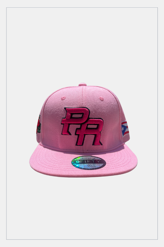 Puerto Rico Hat showcases premium PR 3D Pink M-AGA embroidery, highlighting famous distinctive Puerto Rico map barcode. This snapback cap is crafted to offer unmatched style and comfort, making it ideal for daily wear or special occasions to proudly display your Puerto Rican heritage.