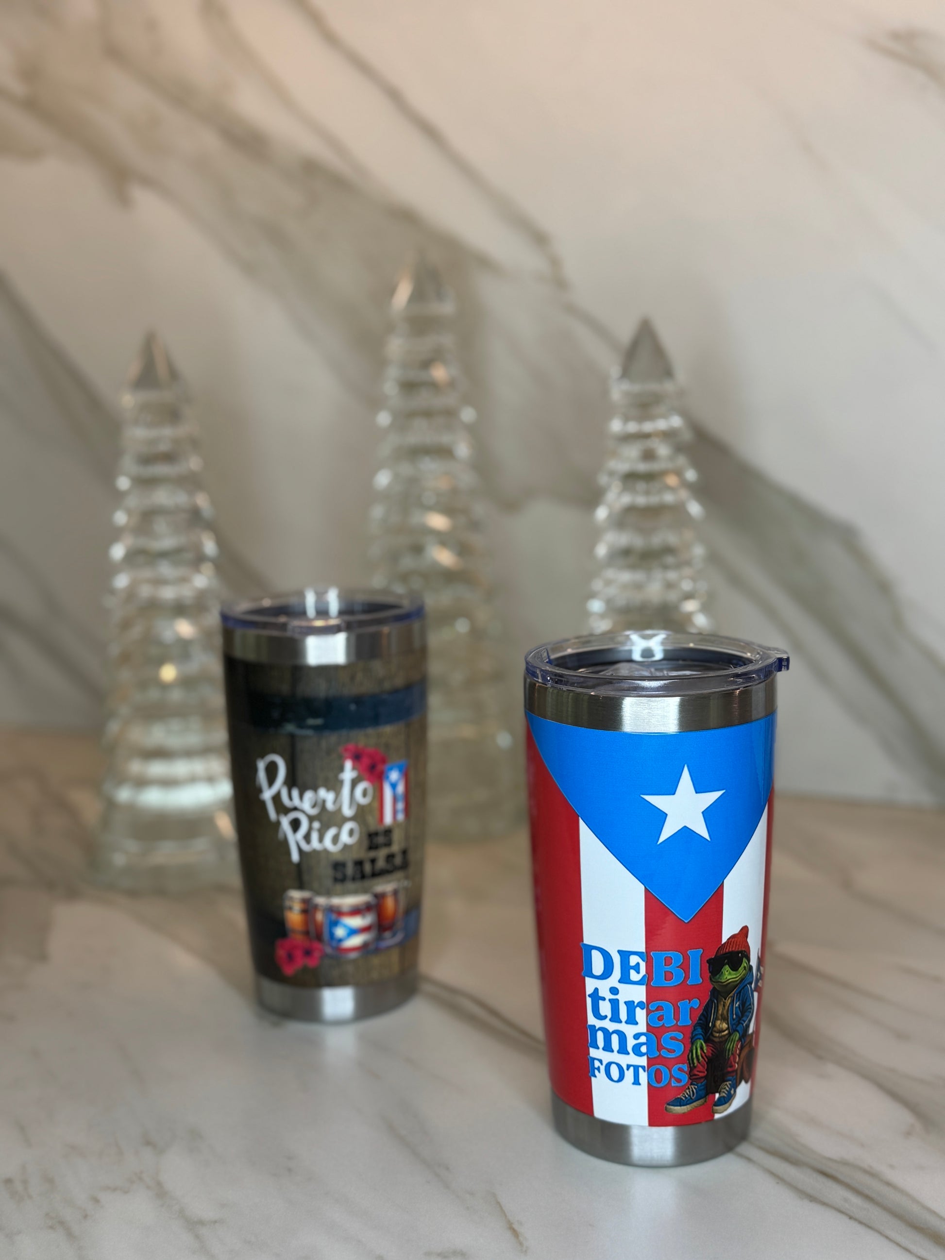 Show your Boricua pride with our vibrant "Puerto Rico Es Salsa" tumbler! Designed by TainoWears, this insulated stainless steel cup features a realistic wood barrel print, the iconic Puerto Rican flag, conga drums, and hibiscus flowers. It's the perfect companion for music lovers, dancers, and anyone who carries the island spirit wherever they go. Keep your drinks hot or cold for hours, all while celebrating the heart of Puerto Rico!