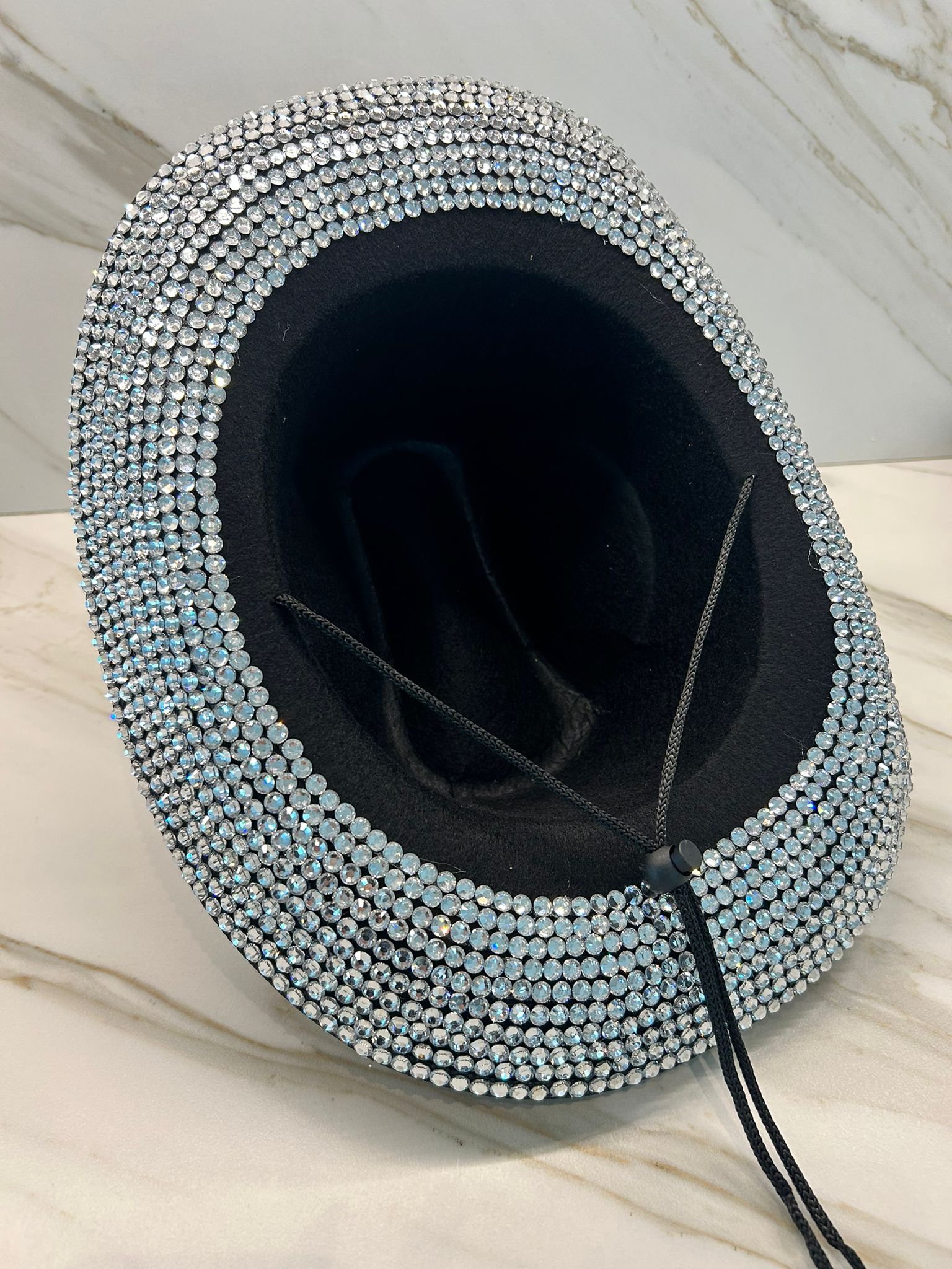 Tainowears Cowboy Hat, Black Diamonds crafted from premium Wool Blend material and adorned with dazzling Swarovski-like rhinestones. Designed for those who value quality and style, this hat adds a unique sparkle and sophistication to any outfit. The luxurious black wool finish and carefully placed individual processing technology rhinestones create a look that’s both fashionable and eye-catching, making this hat ideal for bridal events, festivals, or any occasion where you want to stand out.
