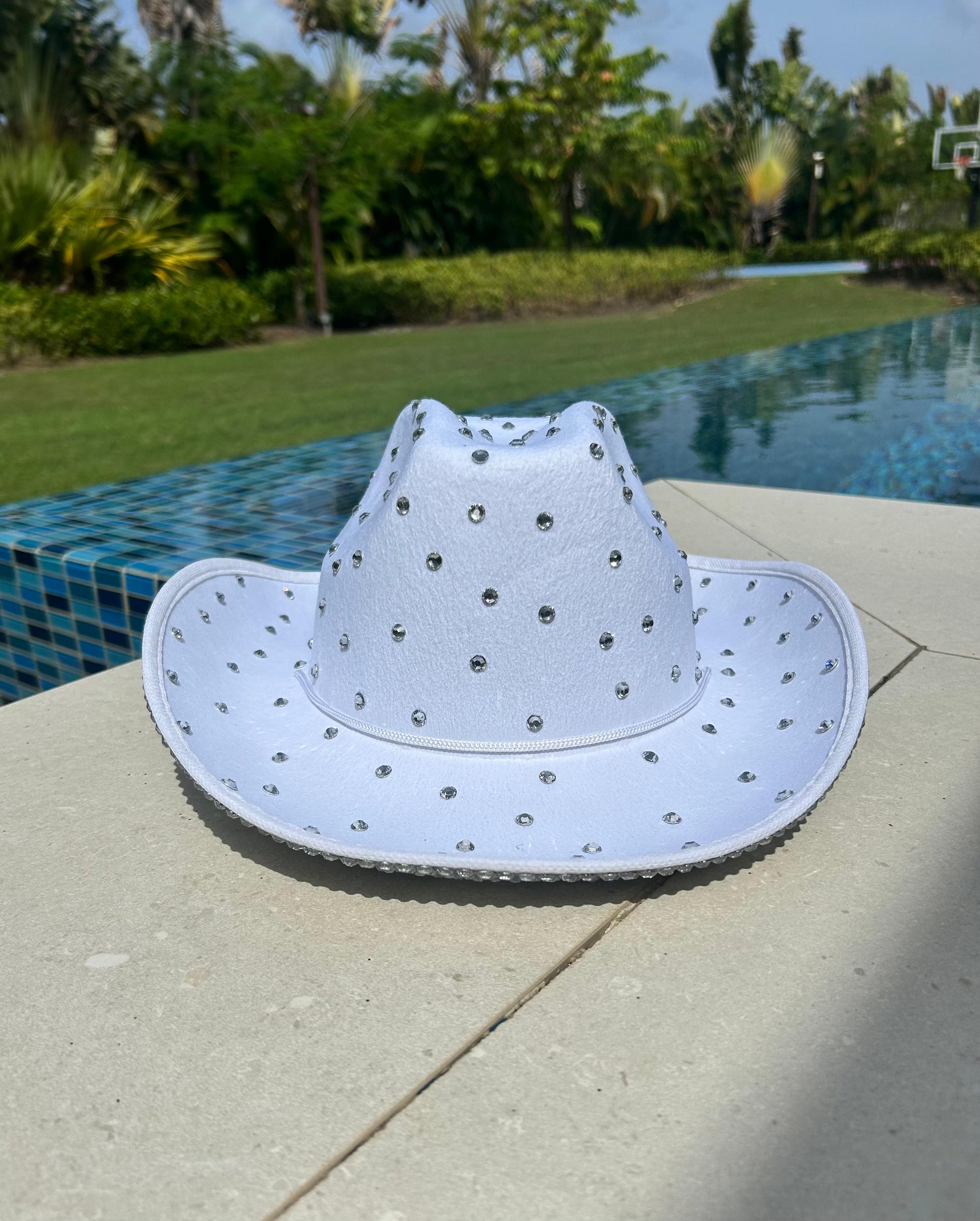 Shine and stand out at every party or festival with this white rhinestone cowboy hat. Designed for both women and men, this hat is the perfect way to show off your unique style. It has a comfortable fit, an adjustable chin strap, and a dazzling brim filled with rhinestones. The hat is light, so it is great for all-day wear. You can wear it at a country music event, a western party, or while enjoying a day outside. The crown also features rhinestone details that catch the light with every move. This rhinestone cowboy hat adds sparkle to your look. It also makes a great gift for friends or family who love western style. Add it to your wardrobe today and make your next event truly special.